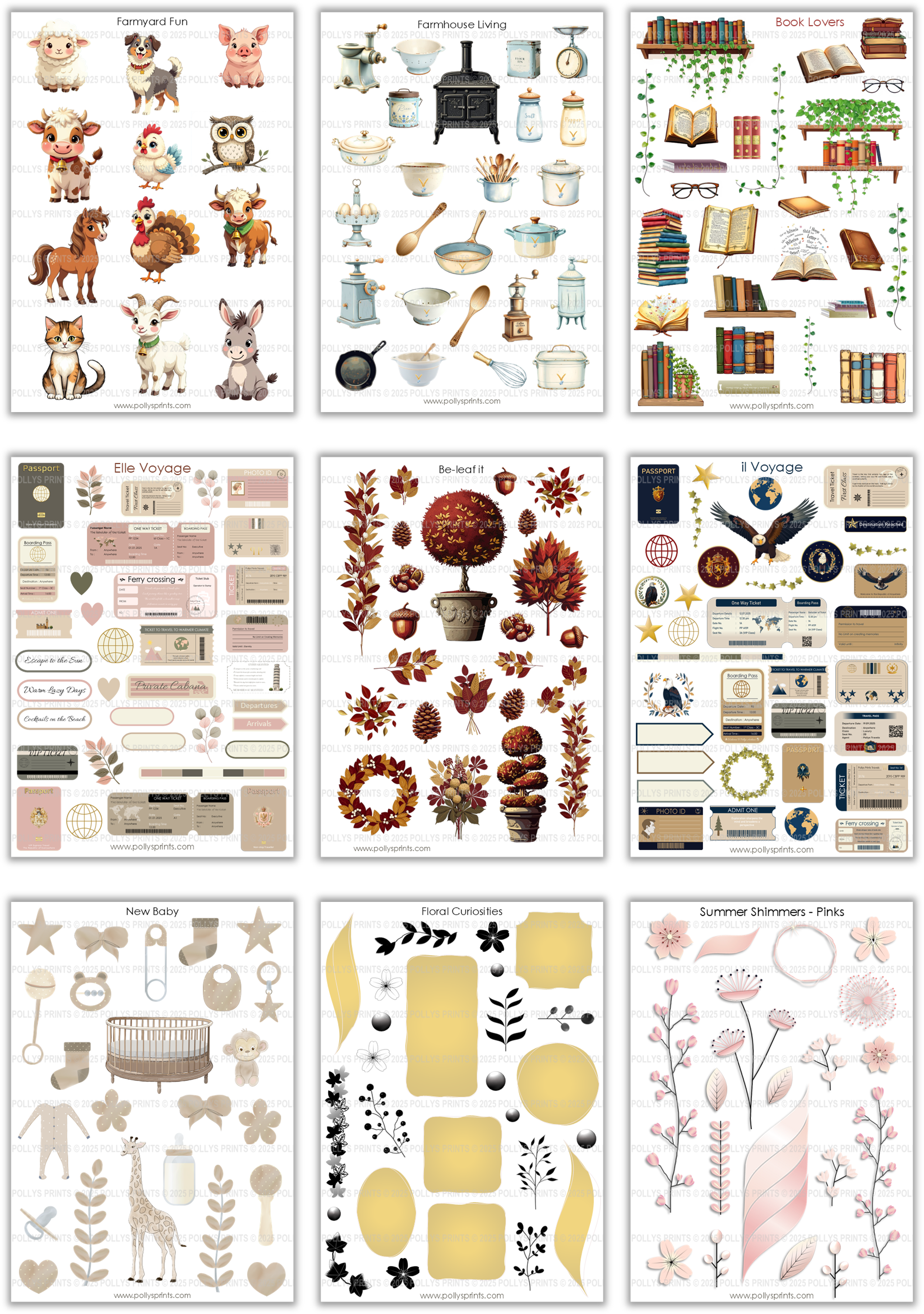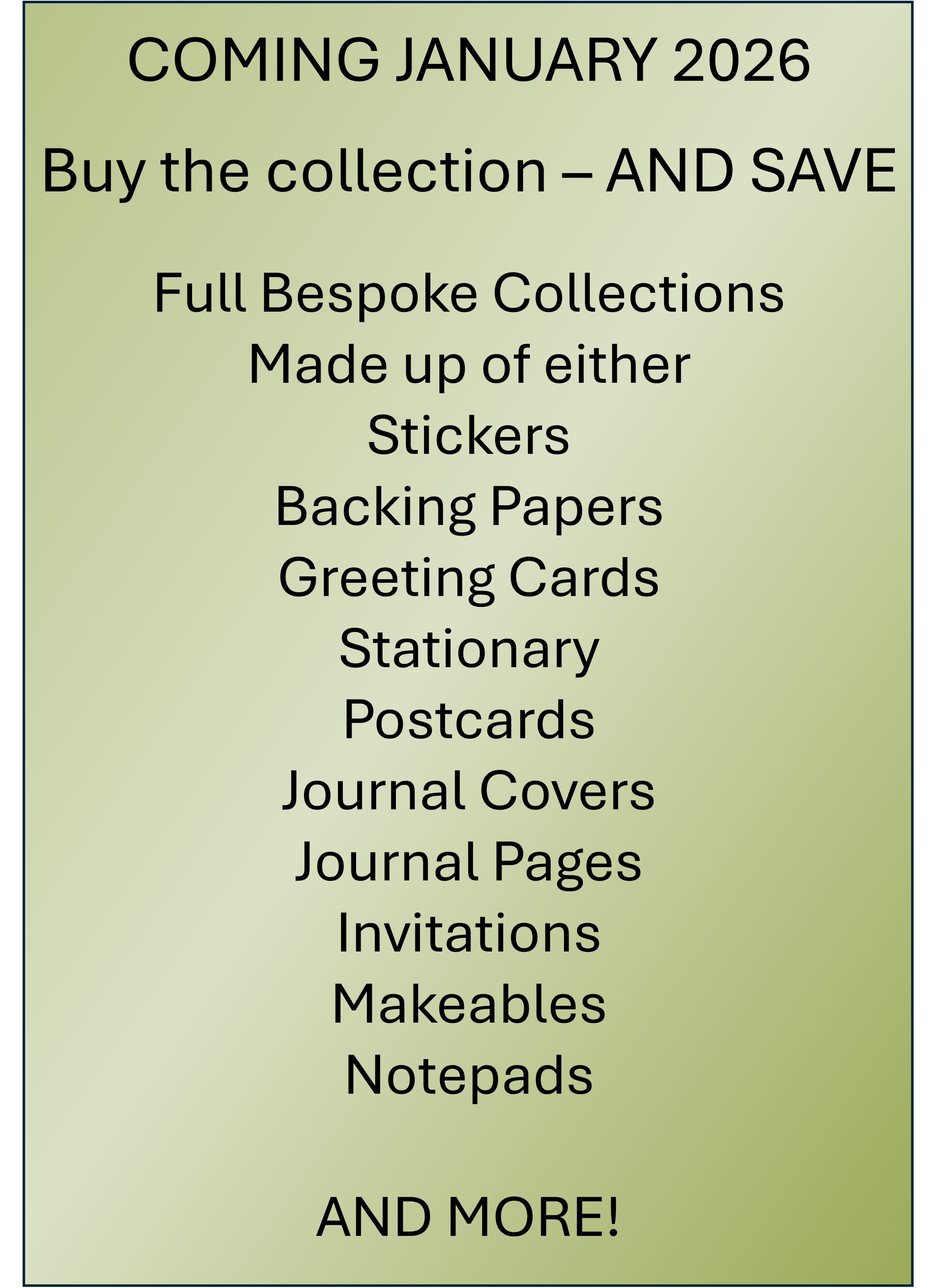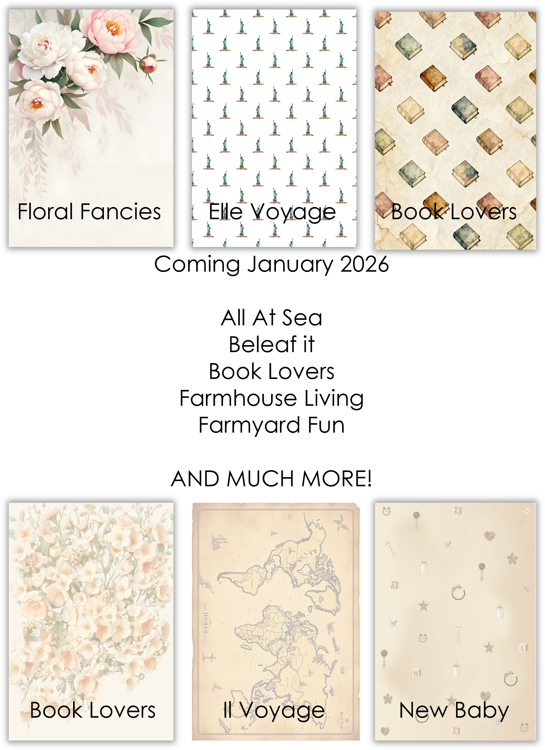 In our shop Backing Papers Journal / Book Covers Notepads Dividers & Tabs Bundles /Collections Journal / Planner Pages Recipe Books Tote Bag Transfers Calendars - Wall Invitations Stationary Sets Shrink Plastic Makeables Greeting Cards Notepads Clothing Transfers Posters & Signage Stickers Makesables Window Decals Phone Case Transfers